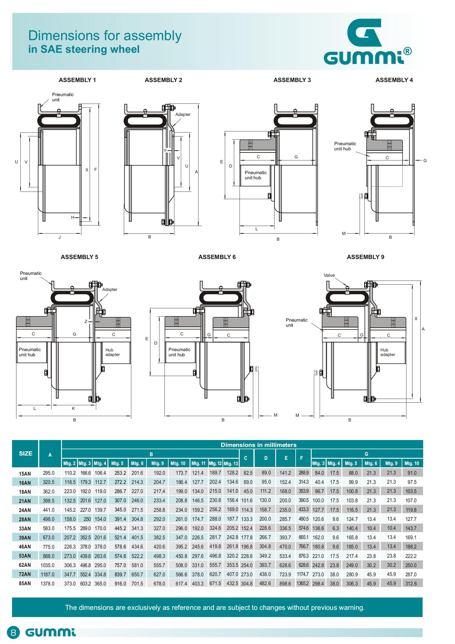 With 13 different assembly configurations and 15 models, including options for flywheel mounting, floating shafts, and dual (tandem) designs, the GUMMI AN couplings offer flexibility for various installation requirements. They are easy to install, requiring no special tools, and support radial, angular, and axial misalignments.