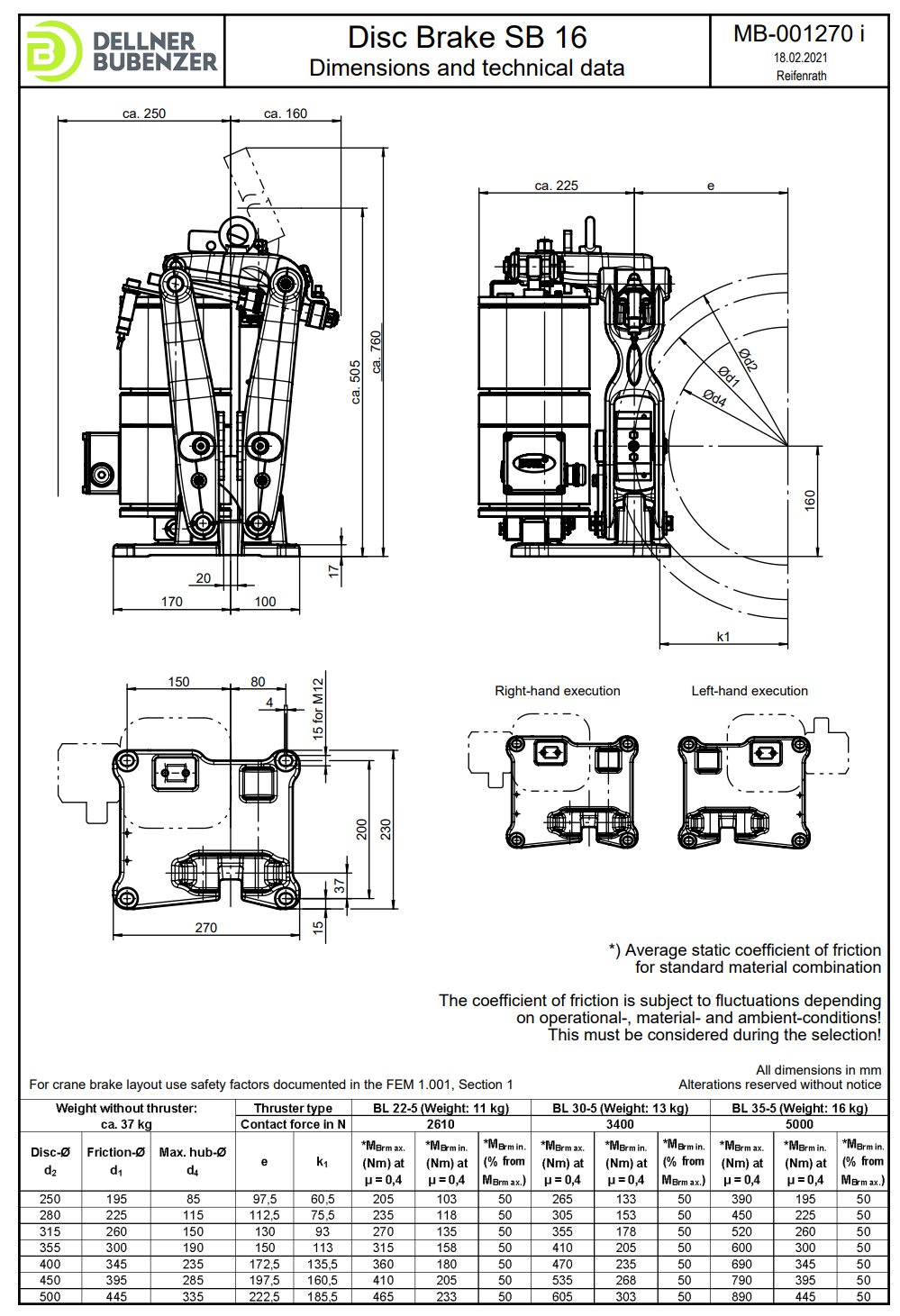 Dellner Bubenzer SB 16是一种盘式制动器,适用于各种工业应用,如起重设备、机械设备等。